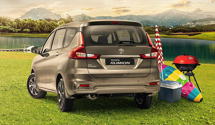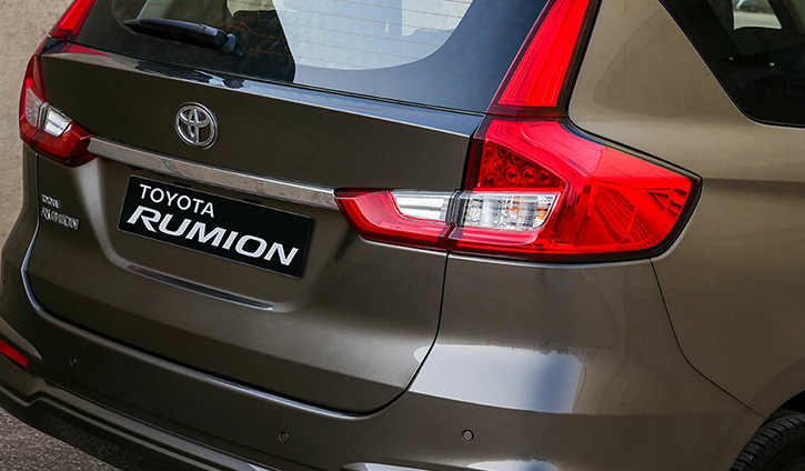 The new Toyota Rumion comes equipped with dual-pod headlamps, LED tail lights, a new three-slat chrome grille, 15-inch multi-spoke alloy wheels, a touchscreen infotainment system with Apple CarPlay and Android Auto, automatic climate control, dual front airbags, ABS with EBD, rear parking sensors, a speed alert system,and a seat-belt reminder.