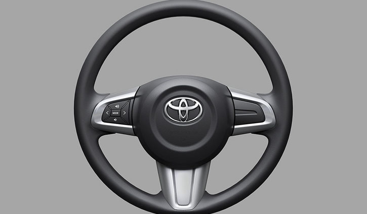 The Toyota Rush offers a practical interior designed for comfort and functionality, featuring a 7-seat layout with split-folding second-row seats for versatile cargo space. Standard amenities include fabric upholstery, a multi-information display, and dual-zone automatic climate control. Convenience is enhanced by Bluetooth connectivity, USB ports, and steering wheel audio controls. Safety-focused elements like height-adjustable seatbelts and ISOFIX anchors complement its family-friendly design, while the reverse camera aids maneuverability. The cabin prioritizes user-friendly storage with a center console box and seatback pockets.