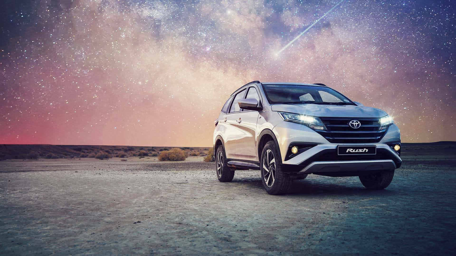 Introducing the all-new Toyota RUSH, an urban SUV with a front-engine, rear-wheel-drive layout. Its large tires and high ground clearance ensure solid all-terrain performance, while powerful traction adapts to passenger and cargo loads. Enjoy excellent maneuverability with a small turning radius and low fuel consumption from its aerodynamic design and agile 1.5L engine.