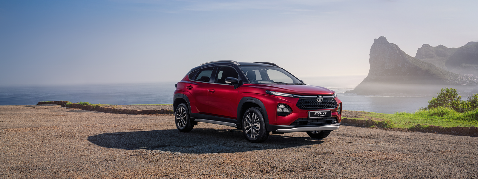 The Toyota Starlet Cross is designed to turn heads and boost your confidence. It blends crossover functionality with coupé elegance, offering SUV practicality with sophisticated style. Its bold front features a distinctive black honeycomb grille and sharp LED headlamps. As the most affordable small crossover, the Starlet Cross strengthens Toyota's presence in the compact car market.