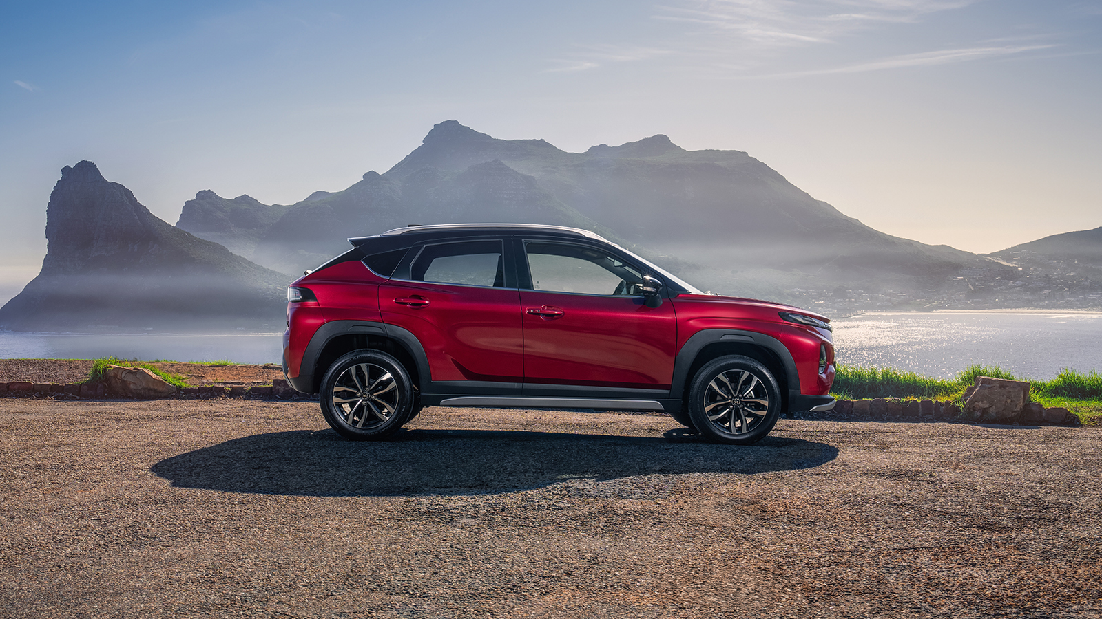 The Starlet Cross combines style and capability with features like a matte black honeycomb grille, sleek LED headlamps, and 16-inch alloy wheels. It comes in various colours, including six monochrome hues and three bi-tones with contrasting black roofs and auto-folding side mirrors. The interior boasts an electronic push/start system*, cruise control, and a wide display audio touchscreen with Apple CarPlay and Android Auto, plus safety features like a reverse camera, rear parking sensors, and auto lights with Follow-Me-Home functionality.